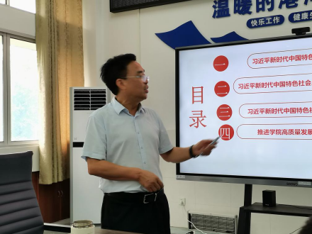 陈国民首先作题为“扎实开展学习贯彻习近平新时代中国特色社会主义思想主题教育推进学院高质量发展”主题党课报告。从学习贯彻习近平新时代中国特色社会主义思想主题教育、习近平新时代中国特色社会主义思想的核心要义、习近平新时代中国特色社会主义思想的世界观、方法论以及推进学院高质量发展举措四个方面进行了全面深刻阐述与分析。陈国民指出学习贯彻习近平新时代中国特色社会主义思想主题教育是贯彻落实党的二十大精神的重大举措,要坚持学思用贯通、知信行统一,把习近平新时代中国特色社会主义思想转化为坚定理想、锤炼党性和指导实践、推动工作的强大力量,努力在以学铸魂、以学增智、以学正风、以学促干方面取得实实在在的成效。