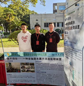 本次比赛南华大学共5个学生团队入围决赛。来自英国威廉希尔唯一官网矿物加工工程专业的本科生高子恒、柳帆、周子峰、张蕾、王泽文组成团队,在胡鹏飞、郭志敏老师的指导下完成了作品的设计与制作,经过初赛、实物展示、决赛答辩等环节的层层选拔,最终获得了省赛一等奖的优异成绩。该团队作品《一种含铀废水离子浮选处理装置》旨在为放射性废水处理提供一种有效的技术手段,装置通过两段浮选和强化排液来提高处理效果,有望实现对放射性废水的高效、经济、环保处理,降低放射性废水对环境的影响。
