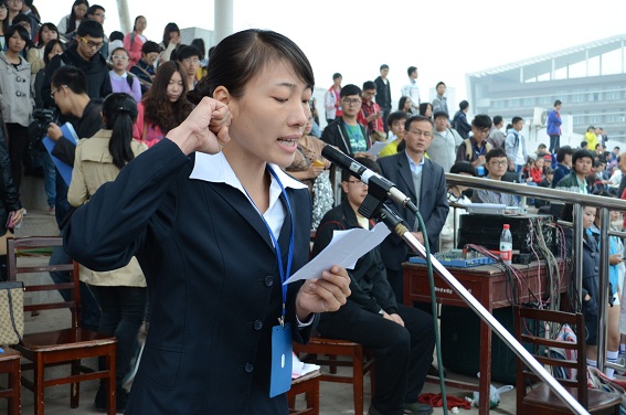 紧接着大会组委会主任、校长文格波宣布南华大学“阳光体育”系列活动之一——2013年大学生田径运动会开幕。随后大会组委会副主任、 副校长刘升学致开幕词。他阐述了运动对人类各项事业发展的作用,并号召全体师生都行动起来,将南华大学建设成为高水平高质量的大学。他对精心筹备大运会的工作人员表示诚挚的谢意,同时也对运动员、裁判员提出了要求。此外,他还强调青年大学生应当完善自我,通过这次比赛赛出风格,赛出精彩,赛出友谊。最后他预祝本届田径运动会取得圆满成功。
