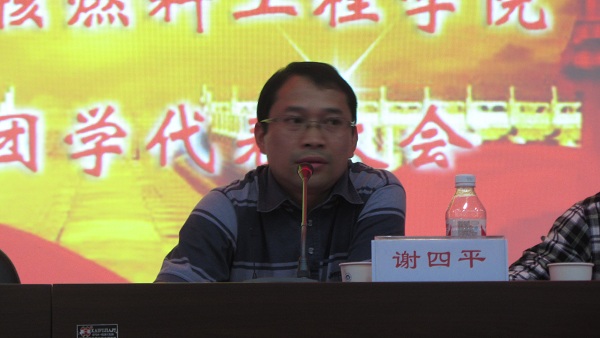 随后,谢四平书记肯定了团学会在过去一年中取得的优异成绩,他表示团学会充分发扬了核资源与核燃料工程学院鲜明的“铀矿冶”精神,并对团学会今后的发展提出了几点建设性意见:一要将服务作为一种理念,服务同学是团学会存在的意义;二要将学习作为一种习惯,学习永远是学生的主题;三要将奉献作为一种境界,在奉献中充实内心;四要将创新作为一种追求,有创新才有前行的动力。