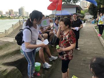 环保知识宣传环节,党支部全体全员积极为市民发放环保知识宣传页,并呼吁大家关注“南华大学资源环境与安全共学院”官方微信公众号了解更多环保知识。此外,宣传活动还设置了环保知识有奖竞答,市民只要答对题目便可获赠小礼品,广大市民在参与活动的过程中,有效增强了环保意识,更新了环保理念。