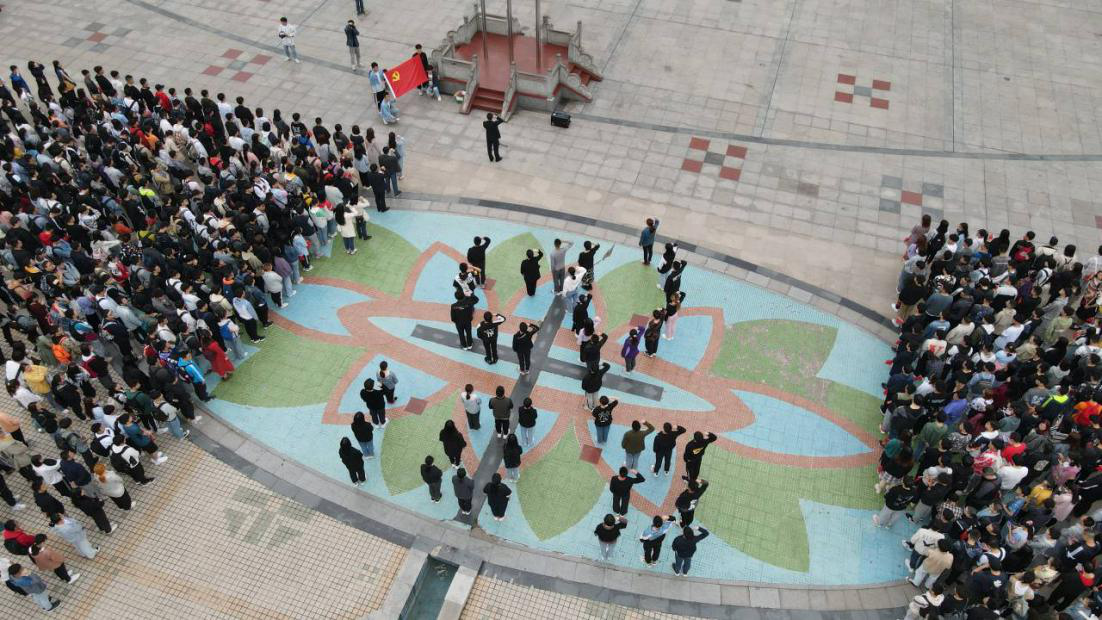 为加强我院学生对党史和传承党的精神有更加深刻的领悟,时刻牢记党的嘱托。学生党支部书记陈彦武老师带领40名党员代表重温入党誓词。党员队伍站列成党徽的图案,这是属于人民和光明的党徽,这是带领中国共产党员走向美好的象征,这庄严的誓词,表达了为中国共产党事业奋斗终身的坚定决心。入党不仅是一种信仰,更是一种传承,是代代人的精神引领,一句句坚定的誓言鼓舞着我们不断向党靠近!