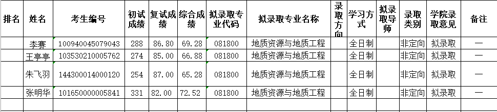 南华大学2020年硕士研究生复试录取意见汇总表(地质资源与地质工程专业)---第三批调剂
