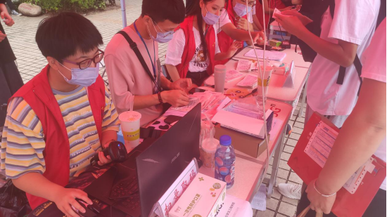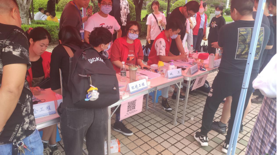 新生在迎新点完成报到后,由志愿者负责引导至新二教101教室领取宿舍钥匙以及床上用品,再到田径场领取新生军训服饰。之后,再在志愿者的带领下,新生到达宿舍。