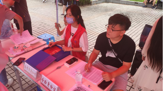 志愿者收取新生录取通知书,查验身份证核实新生信息