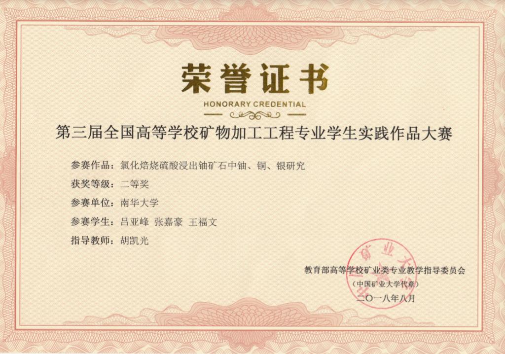 第三届全国高校矿物加工工程专业学生实践作品二等奖