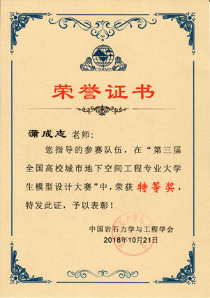 第一届全国城市地下空间工程专业青年教师讲课大赛二等奖