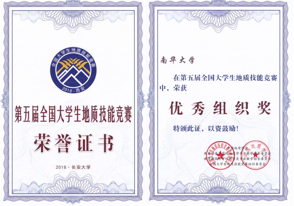 第五届全国大学生地质技能竞赛“优秀组织奖”
