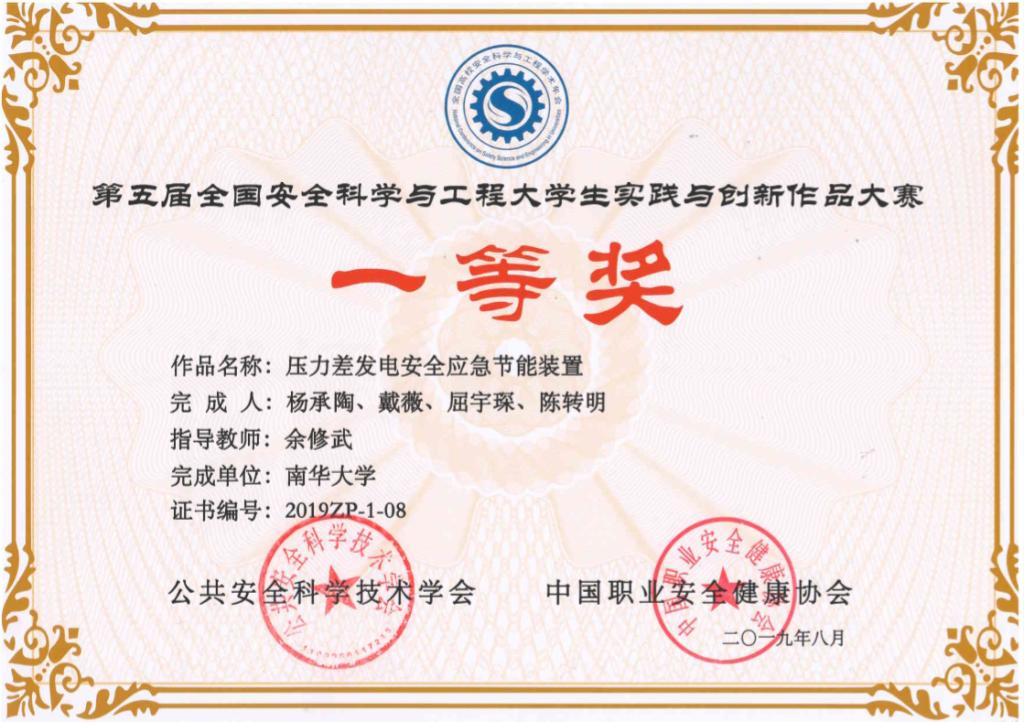 第五届全国高校安全科学与工程大学生实践作品一等奖