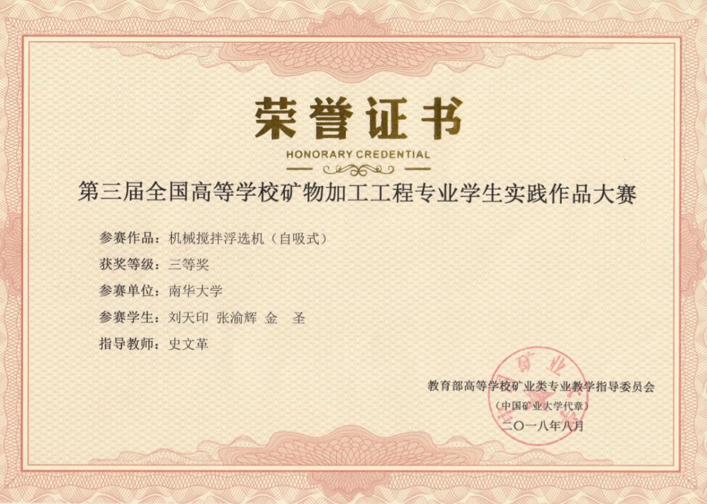 第三届全国高校矿物加工工程专业学生实践作品一等奖