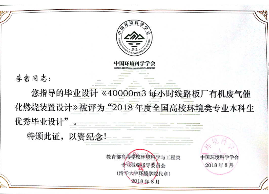 环境工程专业老师指导的“全国优秀毕业论文”