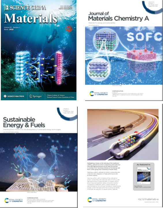 近年来,毕磊教授及其团队在质子导体固体氧化物燃料电池方面做出了一系列的原创性成果,以南华大学为第一作者单位在国内外重要期刊上发表学术论文10余篇,包括在Journal of Materials Chemistry A(中科院一区期刊,影响因子12.732)上发表学术论文3篇,在SCIENCE CHINA Materials(中科院一区期刊,我国卓越期刊计划入选期刊,影响因子8.273)上发表学术论文2篇。多篇论文入选ESI高被引论文,同时有4篇论文被期刊选为封面论文,涵盖了质子导体固体氧化物燃料电池关键材料与部件等多方面的研究。