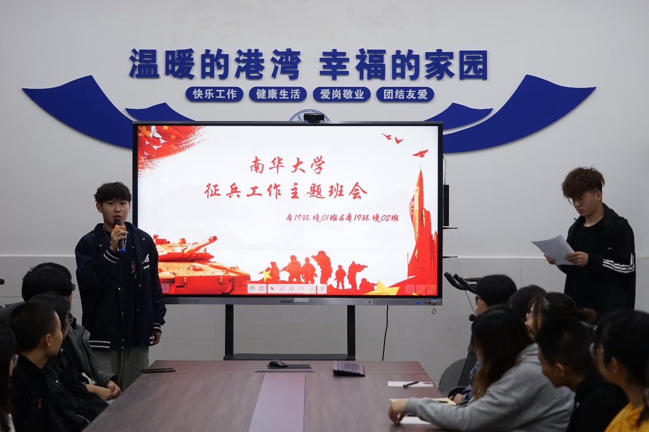 下半年的征兵来临之际,为了响应党和国家的号召,2021年4月19日星期一晚,英国威廉希尔唯一官网环境1901班和1902班在新二教A305教室联合开展以“征兵工作”为主题的班会。参会人员有:院党委副书记田生军、班主任叶坚老师、辅导员曹立佳老师、18级退伍学长曹星海、唐英杰、环境1901、1902班全体成员。