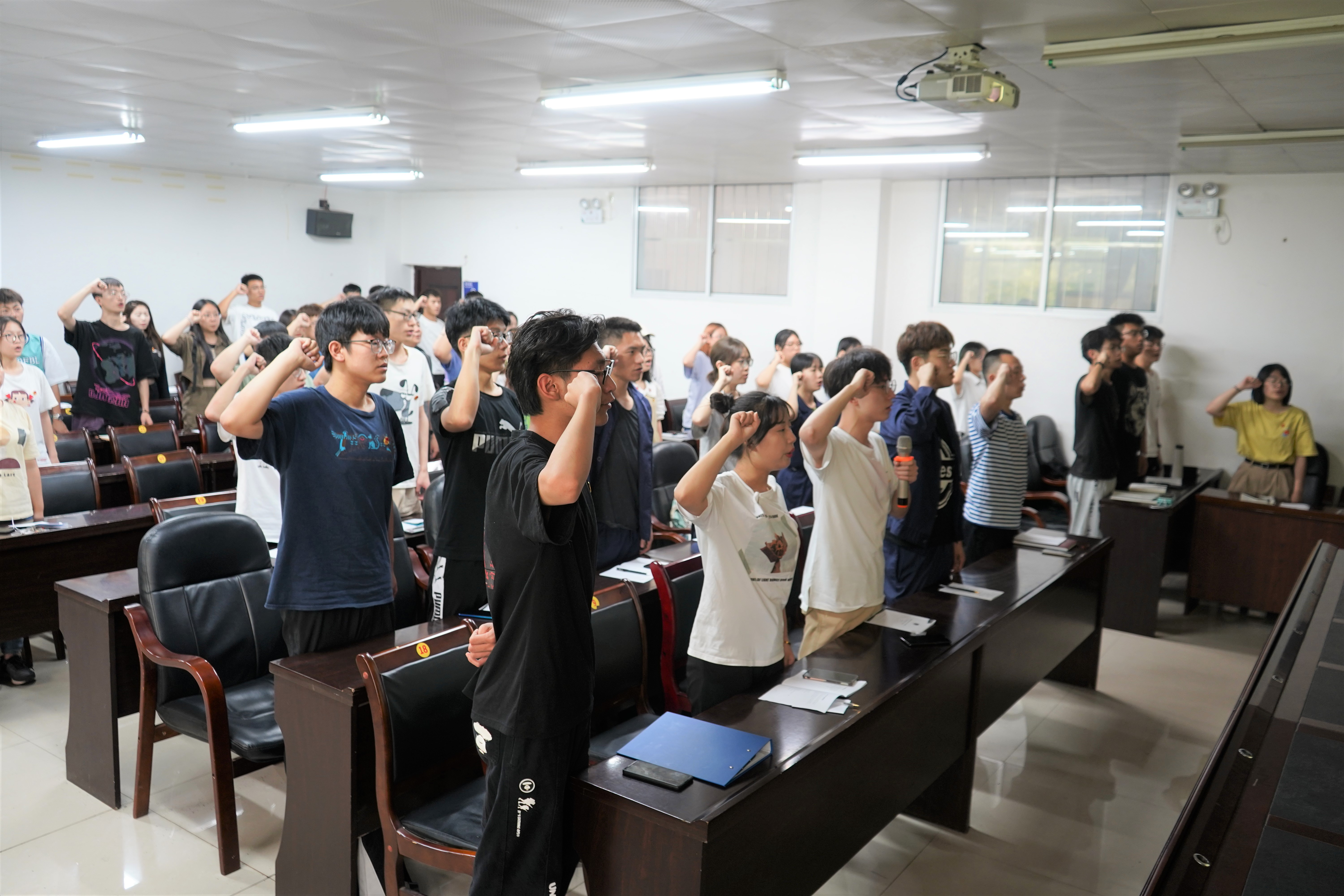 大会第四项入团仪式教育,李家辉领誓、孙延森宣读入团志愿书 。入团仪式教育不仅对新团员有较大意义,对于广大的老团员同样具有重要的教育意义,为增强全院团员的爱团爱国意识,特开展此次教育活动,在本学期的新团员发展工作中,资勘191班陈美伶、安工203班孙延森、矿类205班王朔经过发展培训已经光荣的加入了中国共青团。本次由新团员代表孙延森同学宣读他的入团宣誓书,他强调了爱团爱国的重要性和必要性。入团对于每一个青年人来说都是一个光荣而伟大的时刻,与会的全体成员在李家辉的领读下重温了入团誓言。