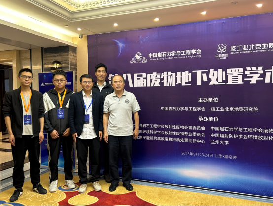 我院唐振平研究员带队参会,资源勘查工程系主任段先哲和系副主任韩世礼以及硕士研究生贵仁高和汪佳伟参加了此次会议。段先哲和汪佳伟分别做了题名为《甘肃北山深部地下水中铀络合物形态的地球化学研究:对高放废物安全处置的启示》和《多场耦合作用下深部花岗岩巷道蠕变规律数值模拟》的学术报告。会议期间举行了中国岩石力学与工程学会废物地下处置专业委员会换届大会,段先哲当选为第五届专委会委员。