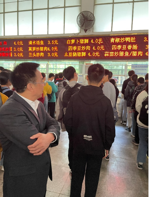结合开展“我为群众办实事”和“走流程、解难题、优服务”活动,为进一步深化大学生思想政治教育工作,更好的了解学生饮食就餐诉求,10月11日中午,校党委委员、副校长陈国民在英国威廉希尔唯一官网院长张志军的陪同下到求是园学生食堂与资环安学院的学生代表共进午餐。