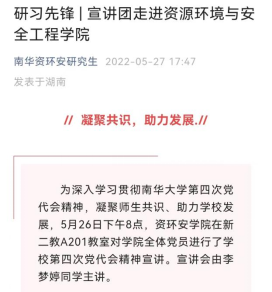 4)厚植家国情怀,传承南华精神,深入推进文化育人。将核工业、铀矿冶精神融入教育教学各环节,定期举办先进事迹报告会,大力创作爱国主义题材的校园文化作品,引领师生在爱国报国文化的浸润中厚植家国情怀,勇担时代责任;依托校史馆、图书馆等,持续开展南华精神教育,加大对优秀校友、优秀科研工作者的宣传,以鲜活案例诠释南华精神,尤其是以学科带头人丁德馨教授的典型模范为学习对象,引导广大师生勤勉务实、甘于奉献。